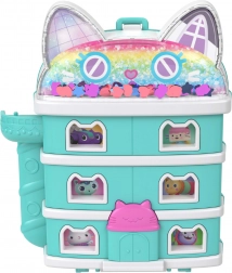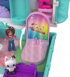 Het compacte kattenhuis van Polly Pocket brengt kinderen een rijke fantasiewereld in een klein, draagbaar etui. Na het openen verschijnen meerlagige interieurs met themakamers, een glinsterende koepel en beweegbare elementen die uitnodigen tot verhalen geïnspireerd op GABBY’S DOLLHOUSE.
