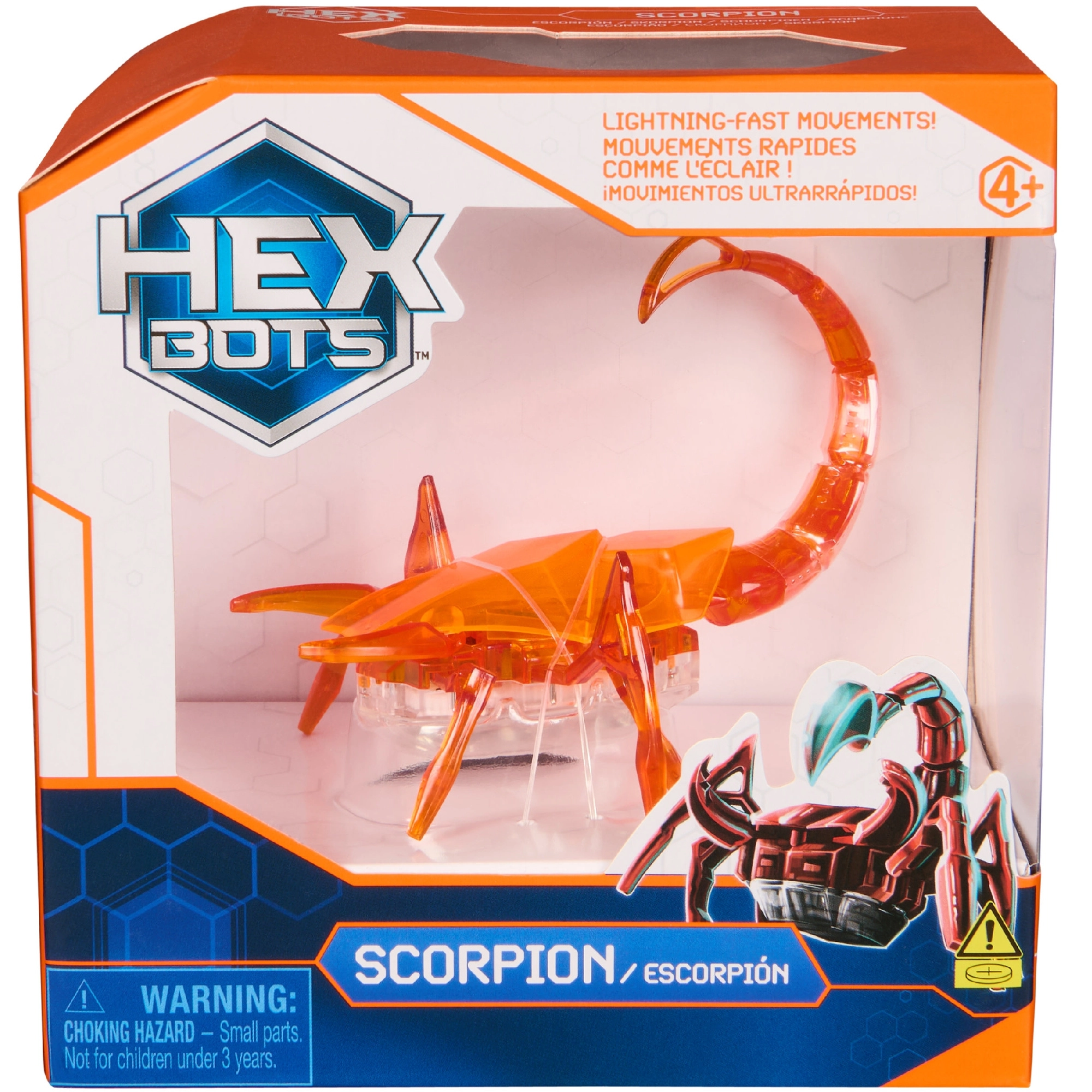 De oranje HEX BOTS schorpioen is een aantrekkelijk robotfiguurtje met een transparante behuizing, dat uitblinkt door dynamische beweging en lichteffecten. Het vibratiemechanisme zet zijn meerledige poten in beweging, waardoor hij behendig kan rijden, van richting kan veranderen, tegen muren kan botsen en op een leuke manier kan omvallen. De oplichtende staart zorgt voor een spectaculair visueel schouwspel.
