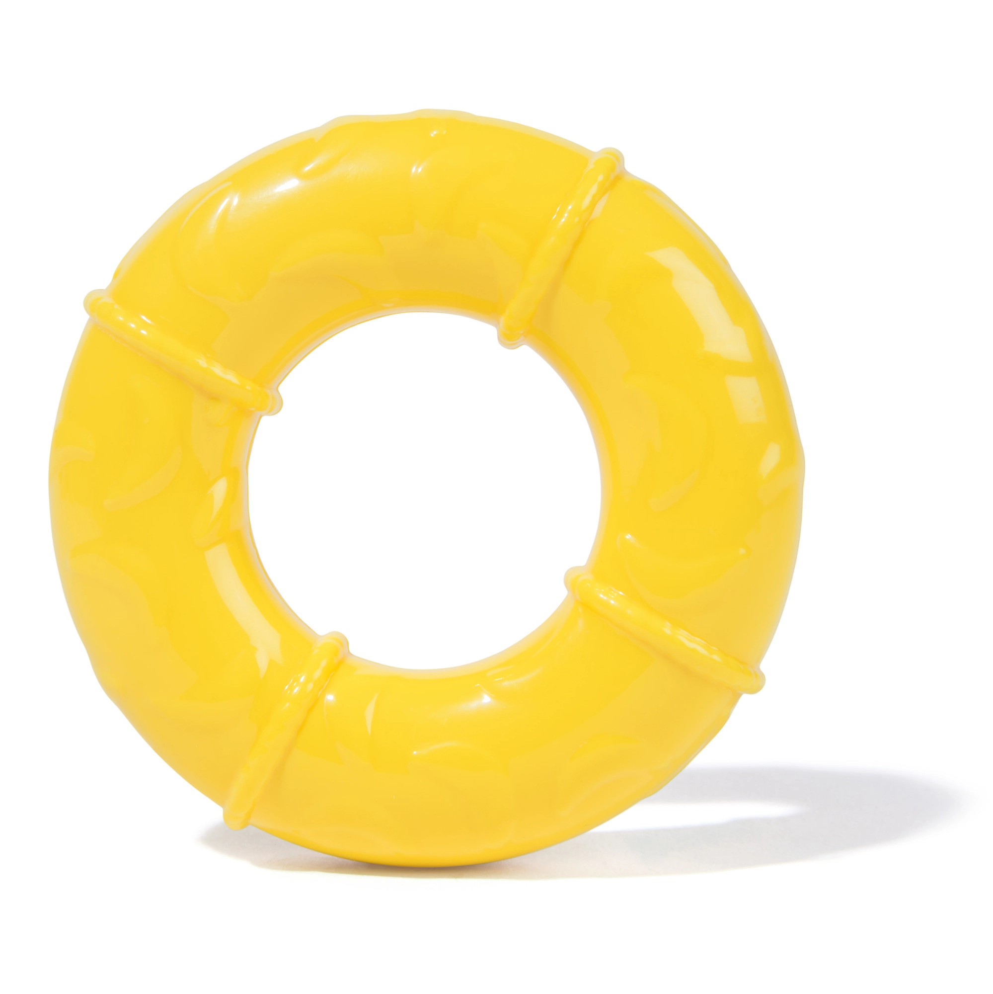 De grote gele zwemband houdt de figuren stabiel op het water en nodigt uit tot spelen in bad en daarbuiten.