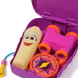 De set bevat thematische hulpmiddelen voor spelen als ontdekkingsreiziger: een verrekijker om verre objecten dichterbij te halen, een kleurrijk kompas voor de richting en een uitschuifbare kaart met een prenten scène voor het plannen van tochten. De perfecte speelset voor de ontwikkeling van fantasie, rollenspel en fijne motoriek.