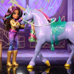 Stap de magische wereld van UNICORN ACADEMY binnen met de 24 cm grote pop Sophia van Spin Master. De stijlvolle heldin met lang gekleurd haar, een gouden jas en rijleggings biedt een realistische weergave van het personage uit de serie, 9 scharnierpunten voor eenvoudig poseren en rijke accessoires voor creatief spel. Een geweldige keuze voor sprookjesfans, fantasierijk spel en verzamelaars.