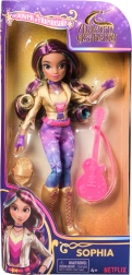 Getrouwe uitwerking van Sophia met een glinsterende gouden jas, rijleggings en opvallende laarzen – een hit voor fans van de serie en nieuwe ontdekkers van de magische wereld.