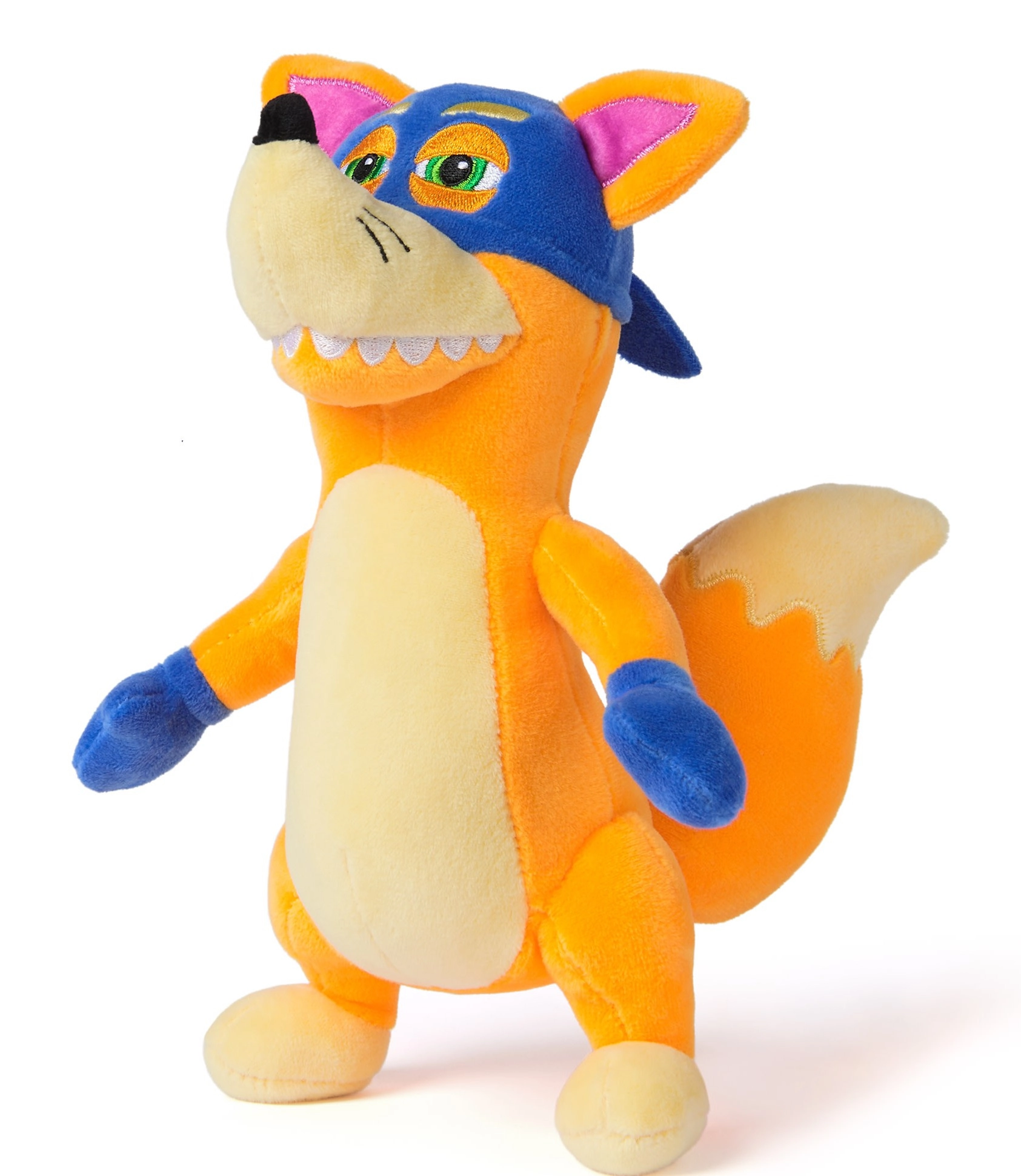 Haal vos Swiper in huis, de beroemde “boef” uit de serie DORA ONTDEKSTER. De pluchen figuur met het iconische blauwe masker en handschoenen heeft een zachte afwerking, geborduurde ogen en tandjes en is ontworpen voor dagelijks knuffelen.