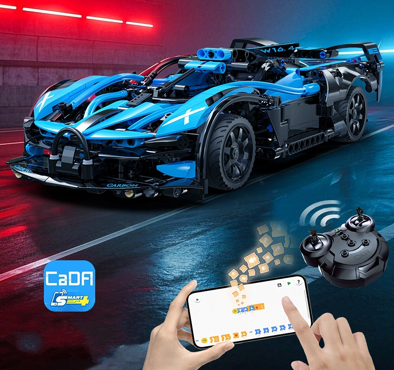 Dankzij de dubbele besturing kies je tussen de 2,4 GHz controller met een bereik van ca. 25 m en een topsnelheid tot 5,5 km/u, of de mobiele app (Android/iOS) met meerdere modi, waaronder gyroscoop en route tekenen. Bedrukking in plaats van stickers, aerodynamische lijnen en kwaliteitsonderdelen die compatibel zijn met andere CaDA-sets tillen het model en het spel naar een hoger niveau.