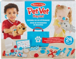 Geef kinderen de wereld van dierenverzorging met deze dierenartsset met 24 realistische accessoires, zachte pluchen patiënten (hond en kat) en een praktische draagtas. Ideaal voor rollenspel als dierenarts en stimuleert op een veilige, leuke manier fantasie, empathie en fijne motoriek.