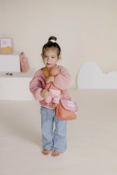 Alles voor dagelijks speelplezier en het nabootsen van echte zorg is inbegrepen: een melkflesje, thermometer, siroop met lepeltje, shampoo-dispenser, slabbetje en een poppenluier. De set stimuleert creativiteit, fijne motoriek en leert verantwoordelijkheid en liefdevolle zorg.
