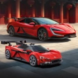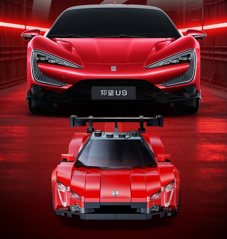 De getrouw vormgegeven rode carrosserie, gedetailleerde velgen en grote achtervleugel maken de YANGWANG U9 tot een onmisbaar pronkstuk.