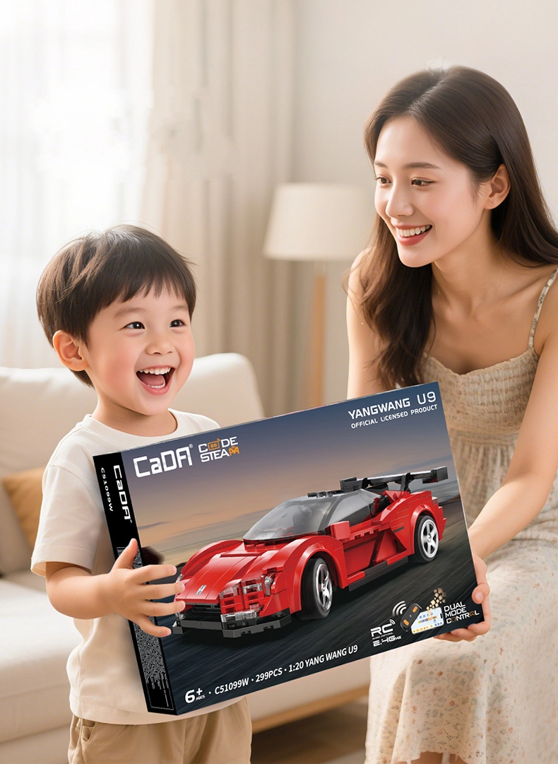 Geniet van de combinatie van bouwplezier en moderne RC-bediening met de CaDA YANGWANG U9 bouwset. Na het bouwen krijg je een gedetailleerd racemodel op schaal 1:20 met afmetingen van 20 × 9 × 5,2 cm, dat er geweldig uitziet op de plank en nog beter rijdt. De carrosserie in rode kleur met bedrukking in plaats van stickers kopieert trouw het uiterlijk van een echte sportauto.