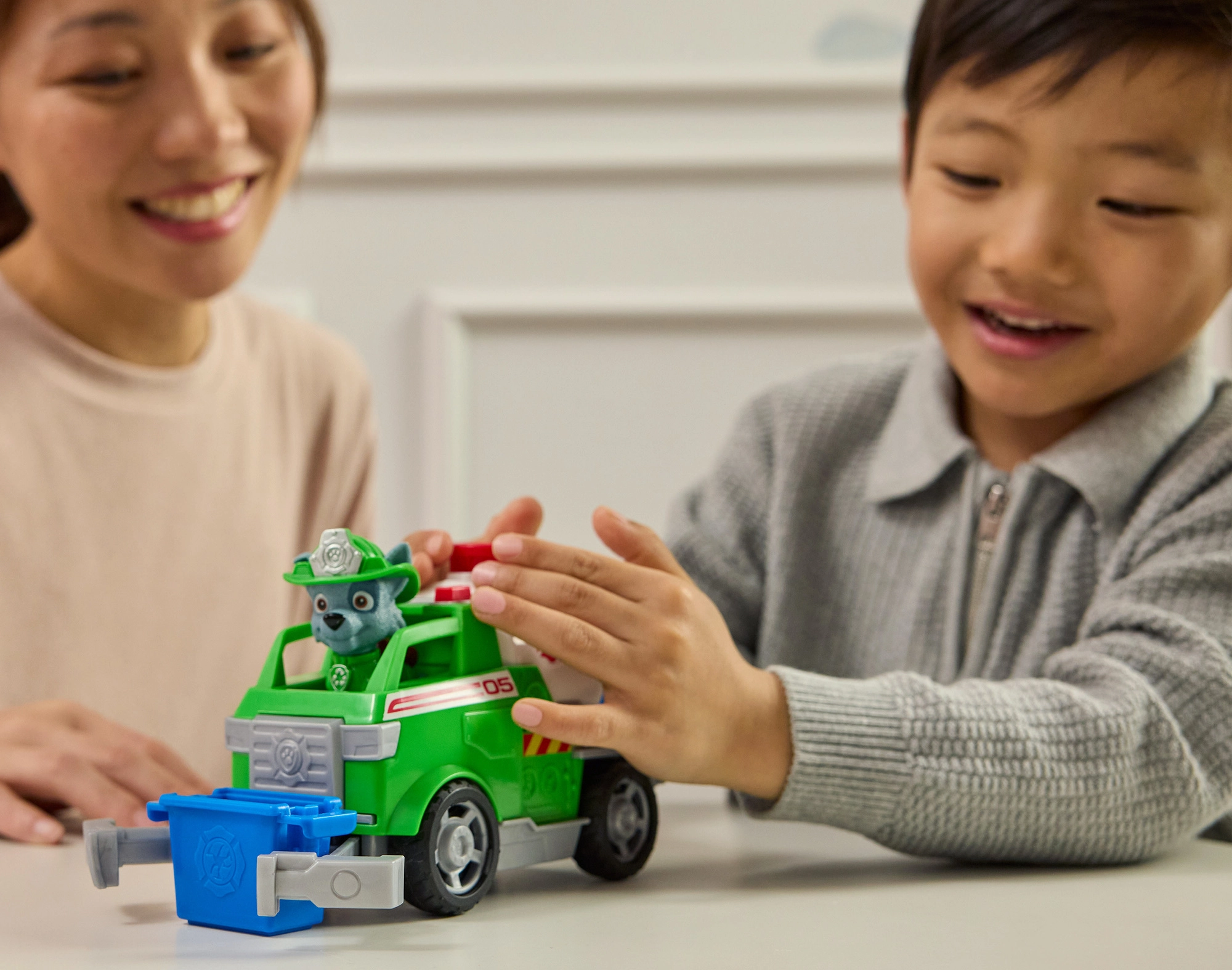 Het groene voertuig rijdt soepel over vlakke oppervlakken. Kinderen kunnen het voertuig duwen en hun eigen verhalen uit de wereld van Paw Patrol vertellen.