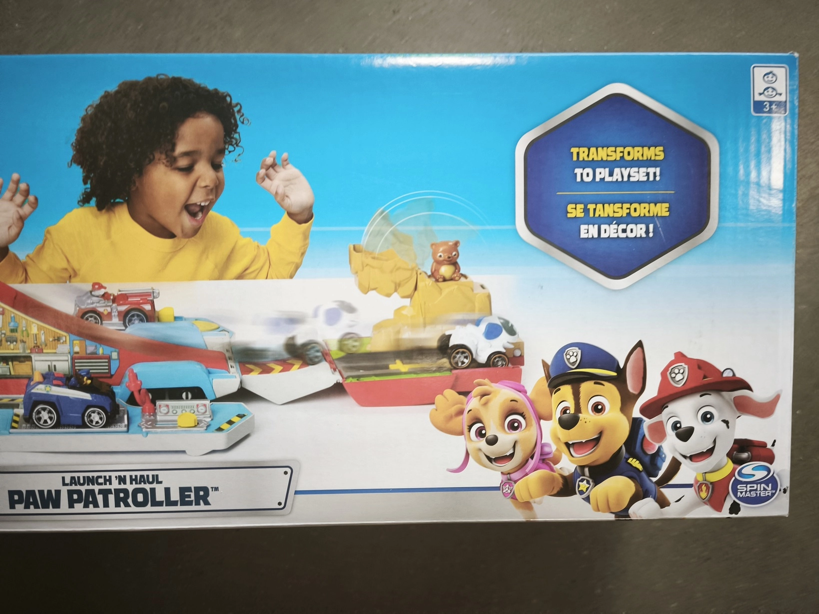 Maak kleine fans van PAW PATROL blij met de coole 2-in-1 transporter. De stabiele vrachtwagen met 12 wielen is ideaal voor rijden op vlakke ondergronden. Na uitklappen verandert hij in een autolanceerder en biedt hij leuke speelscenario’s – van brandblussen via een hefplatform tot het redden van een beer die vastzit tussen rotsen.