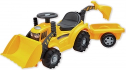 Deze robuuste tractor met aanhanger biedt kinderen volop speelplezier en stimuleert de motorische ontwikkeling. De bulldozerschep kan eenvoudig worden vervangen door een graafschep, zodat kleine bouwers kunnen laden, lossen en vervoeren afhankelijk van hun spel. Dankzij het comfortabele zitje met opbergvak hebben ze hun spulletjes altijd bij de hand.