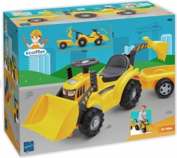 Ecoiffier tractor met gele aanhanger en verwisselbare schep – loopauto voor kinderen