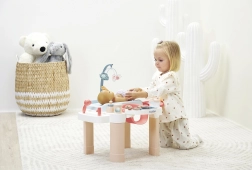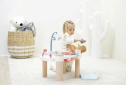 Stimuleer de fantasie en fijne motoriek met dit multifunctionele verzorgingscentrum dat drie speelperken combineert: verzorging, voeden en baden. Dankzij de stabiele constructie, zacht afgeronde vormen en doordachte opbergruimtes kruipen kinderen gemakkelijk in de rol van kleine verzorger.