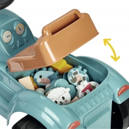 De set bevat 15 bouwblokken, waarmee je kind eenvoudig een koetje en schaapje kan bouwen, plus extra onderdelen voor creatief bouwen. De set ondersteunt de ontwikkeling van fijne en grove motoriek, coördinatie en rollenspel als boer. Het complete voertuig meet ongeveer 86 × 32,5 cm en is ideaal voor kinderen van 12–36 maanden.