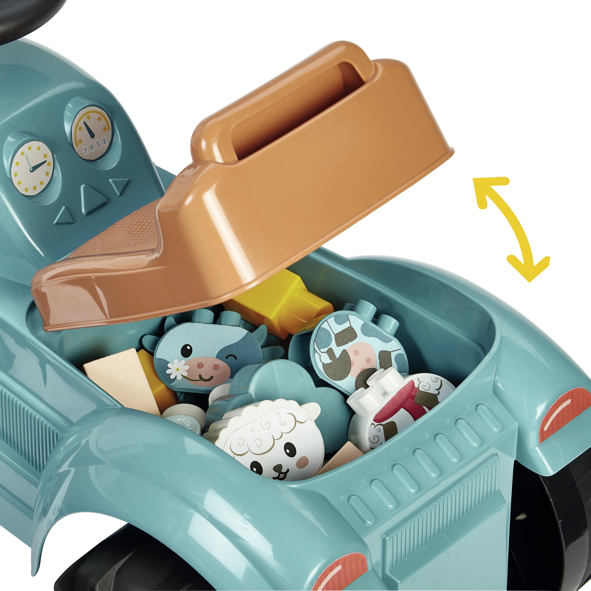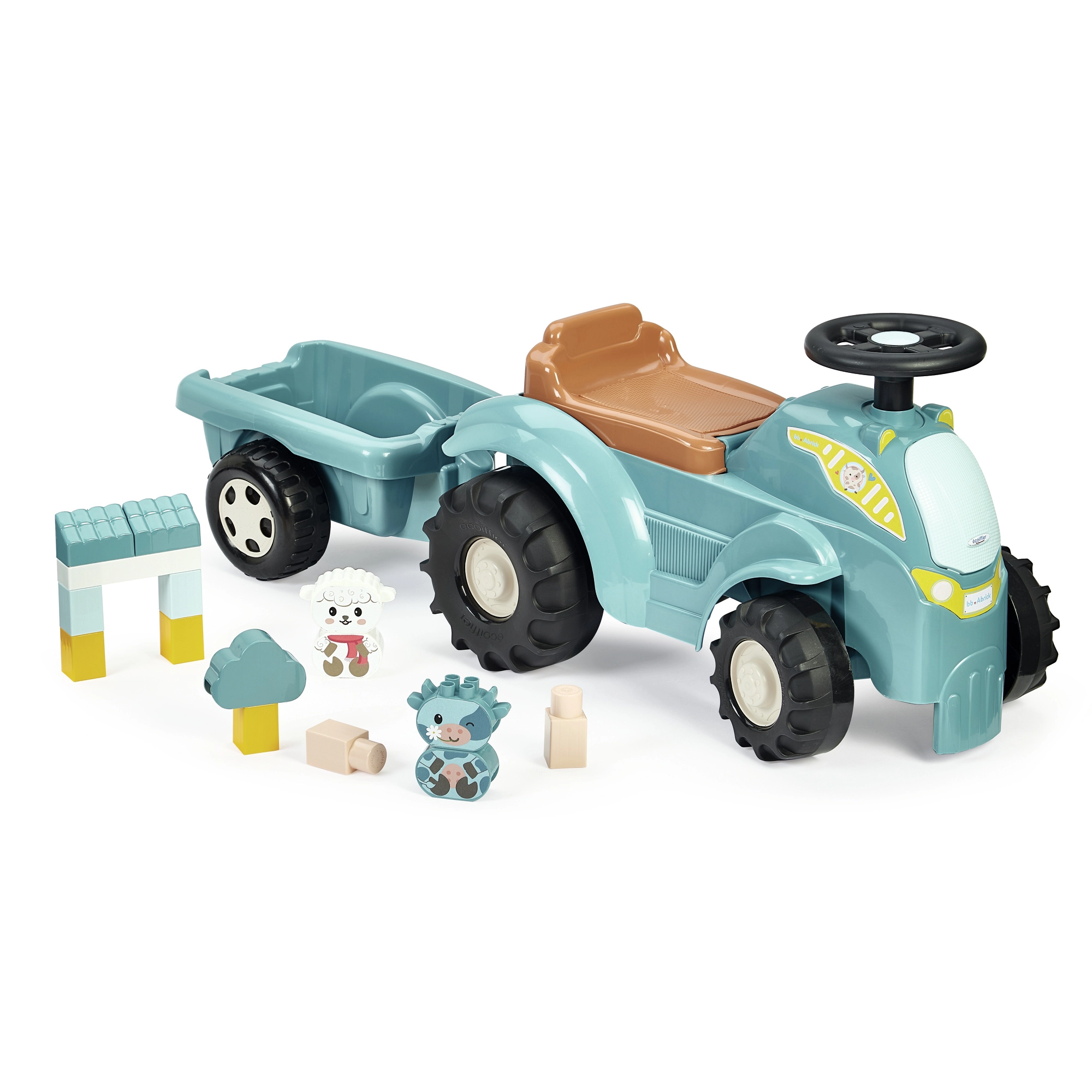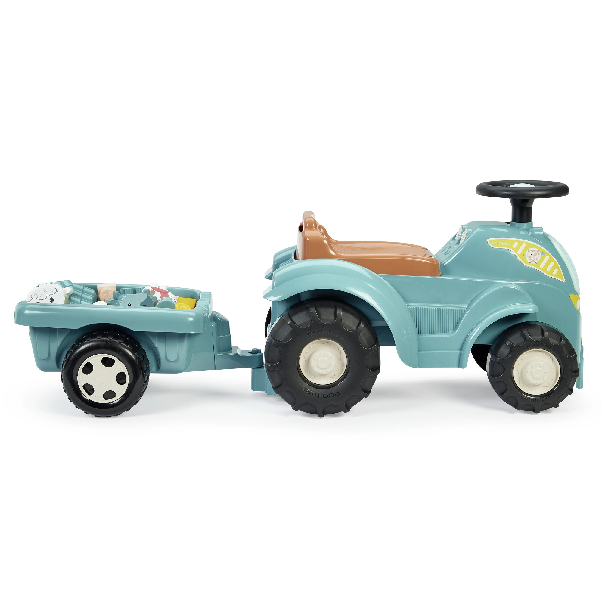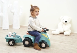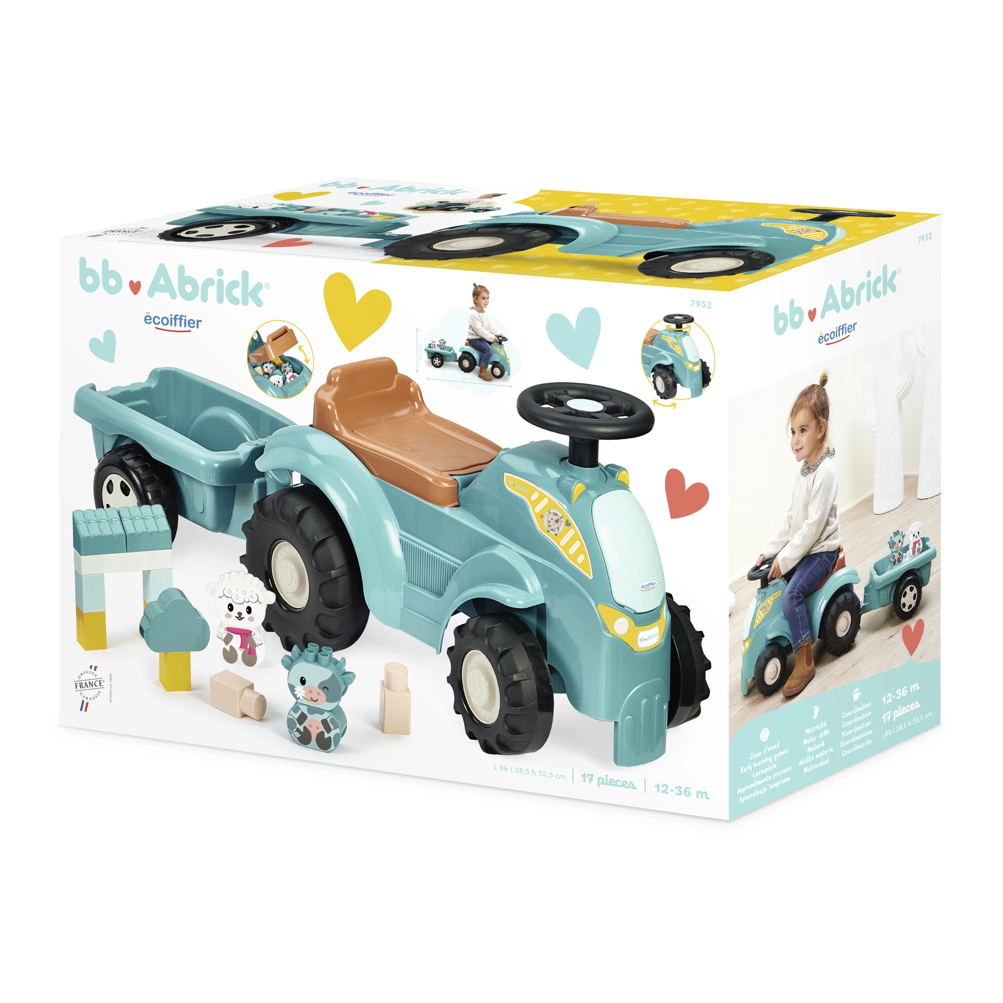 Deze robuuste kindertractor met aanhanger van ÉCOIFFIER uit de ABRICK-lijn is gemaakt voor de eerste ritjes door de woonkamer en in de tuin. Dankzij de grote wielen en de comfortabele zitting is het rijden stabiel en veilig, terwijl de afkoppelbare aanhanger plaats biedt aan blokken en favoriete speeltjes. De praktische opbergplek onder de zitting houdt kleine schatten altijd binnen handbereik.