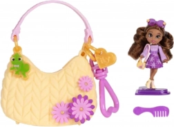 Stijlvolle mini pop uit de serie Disney ILY 4Ever Tote Teenies geïnspireerd door RAPUNZEL brengt veel speelplezier in een compact formaat. Ze heeft lang bruin haar, een paarse outfit met een zonmotief, gele schoentjes en een gouden mini-handtas. Inclusief een grotere roze draagtas, een kam, zonnebril en een standaard om neer te zetten. Ideaal voor jonge Disney-fans en liefhebbers van verzamelbare mini poppen.