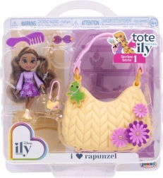 Ontdek de magie van de miniwereld met de pop geïnspireerd door RAPUNZEL uit de populaire serie Disney ILY 4Ever Tote Teenies. Deze schattige pop valt op door haar paarse outfit met zon, lange haren en gouden mini-handtas waar kinderen dol op zullen zijn. De praktische roze tas met Rapunzel-motief biedt plaats aan de pop en accessoires, zodat je haar overal mee naartoe kunt nemen.