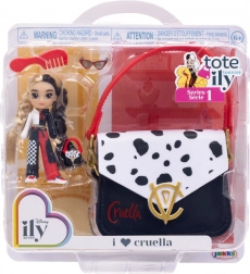 Ontdek de schattige mini pop uit de serie Disney ILY 4Ever, geïnspireerd door Cruella uit 101 Dalmatiërs. Stijlvolle zwart‑rood‑witte outfit met stippen, tweekleurig haar, sportieve schoentjes en een praktische roze tas om de hele set mee te nemen. Inclusief kam, bril en standaard om neer te zetten – het perfecte cadeau voor jonge Disneyfans.