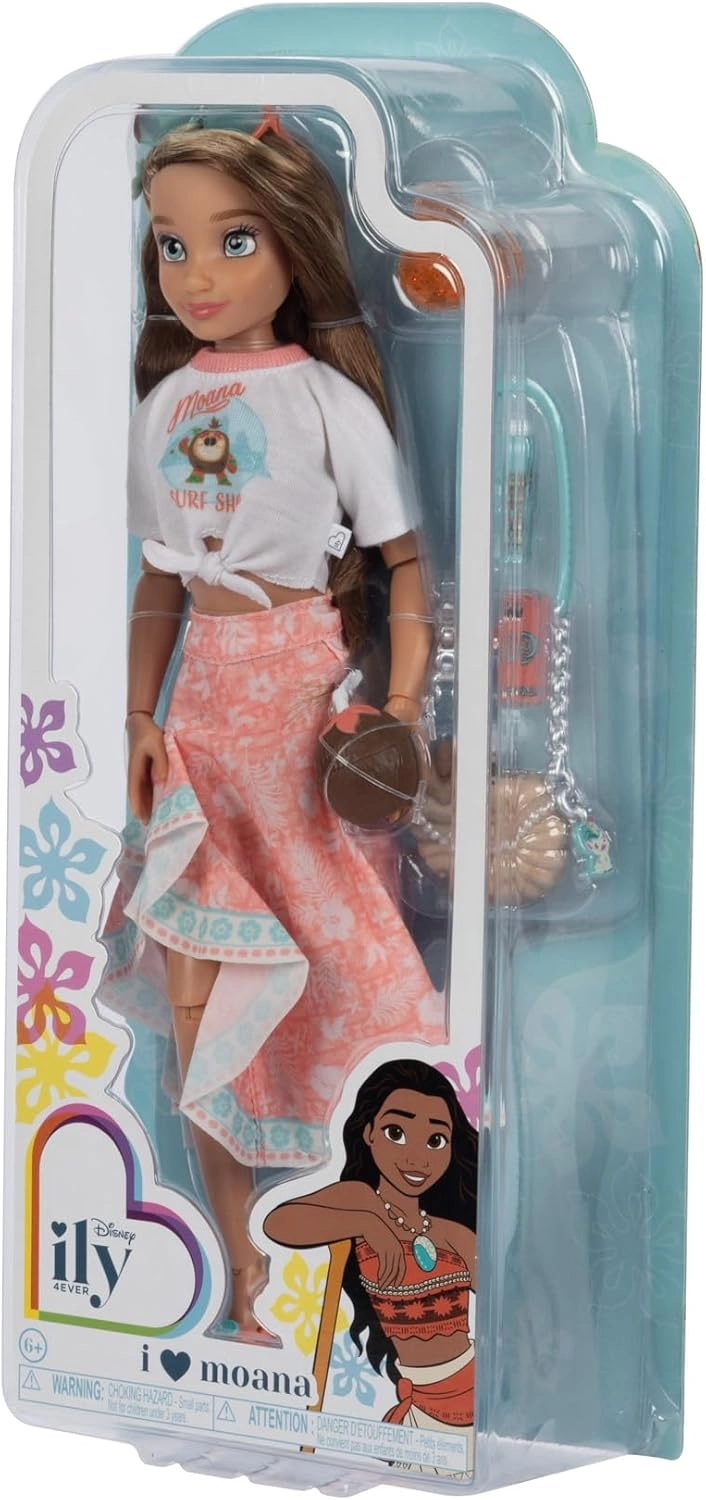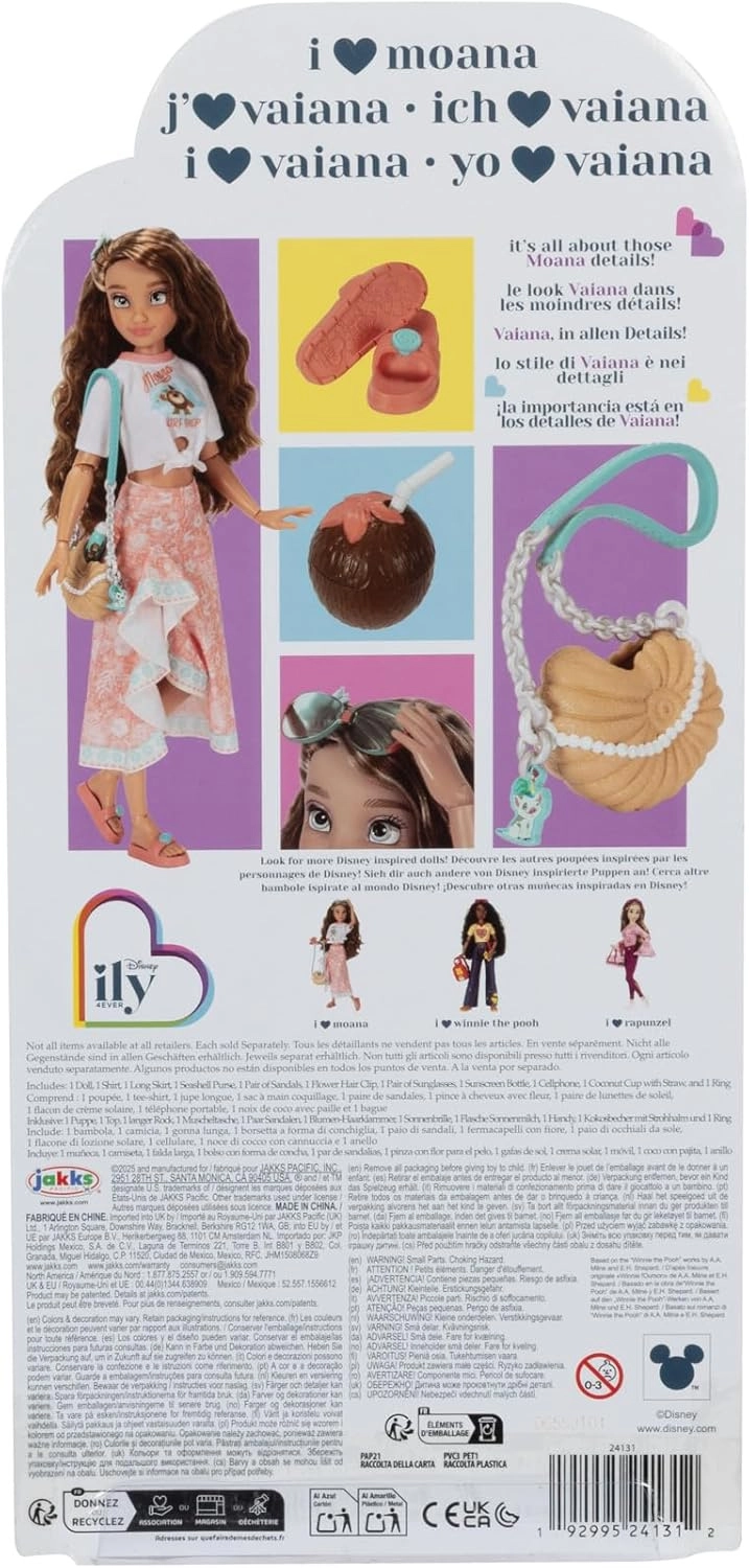 Stijlvolle Disney ILY 4EVER-pop geïnspireerd door MOANA biedt ca. 30 cm speelplezier met 13 punten van articulatie voor realistische poses. Inclusief modieuze accessoires (handtas, bril, telefoon en meer), hoogwaardige afwerking en een gedetailleerde outfit in strandstijl – ideaal voor creatief spel en verzamelaars.