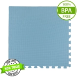 Veiligheid en comfort voor baby’s vanaf de eerste dagen: de mat van veerkrachtig EVA-schuim is zacht, dempt vallen en isoleert tegen een koude vloer. Dankzij het antislip oppervlak ondersteunt hij veilig kruipen, klimmen en de eerste stapjes. De neutrale, lichtblauwe kleur is rustig en past in elk interieur.