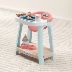 De stabiele hoge stoel met dienblad laat kinderen hun pop comfortabel “voeden” en echte eetrituelen nabootsen.