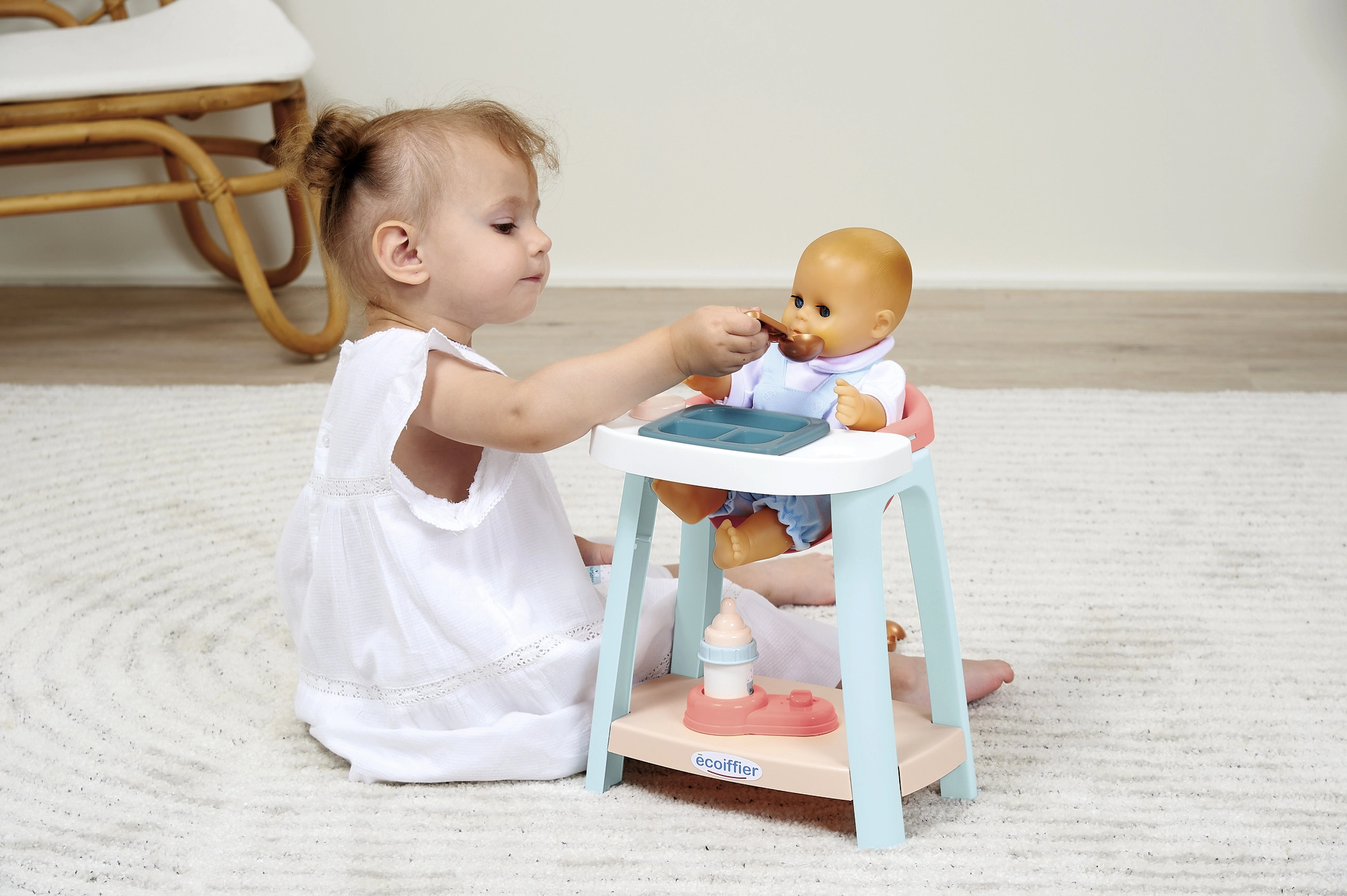 Geef kinderen realistisch zorgspel met de compacte voedingsset voor poppen van het merk ECOIFFIER. Bevat een kinderstoel, een dienblad met vakken en praktische accessoires voor rollenspel. Dankzij het duurzame plastic, de veilige afwerking en de pasteltinten past hij perfect in elke kinderkamer.