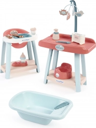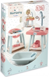 Ecoiffier Nursery 3-in-1 is een veelzijdige set voor poppenverzorging, met alles van voeden en verschonen tot baden. Dankzij drie speelzones en uitgebreide accessoires kunnen kinderen de dagelijkse zorg voor een baby nabootsen en hun eigen verhaaltjes creëren. Pastelkleuren en afgeronde vormen zorgen voor een prettige uitstraling en veilig gebruik.