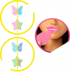 Speldjes veranderen van kleur na onderdompeling in water en de lippen van BARBIE veranderen van tint met behulp van het sponsje – spectaculaire transformaties die kinderen zullen verrassen.