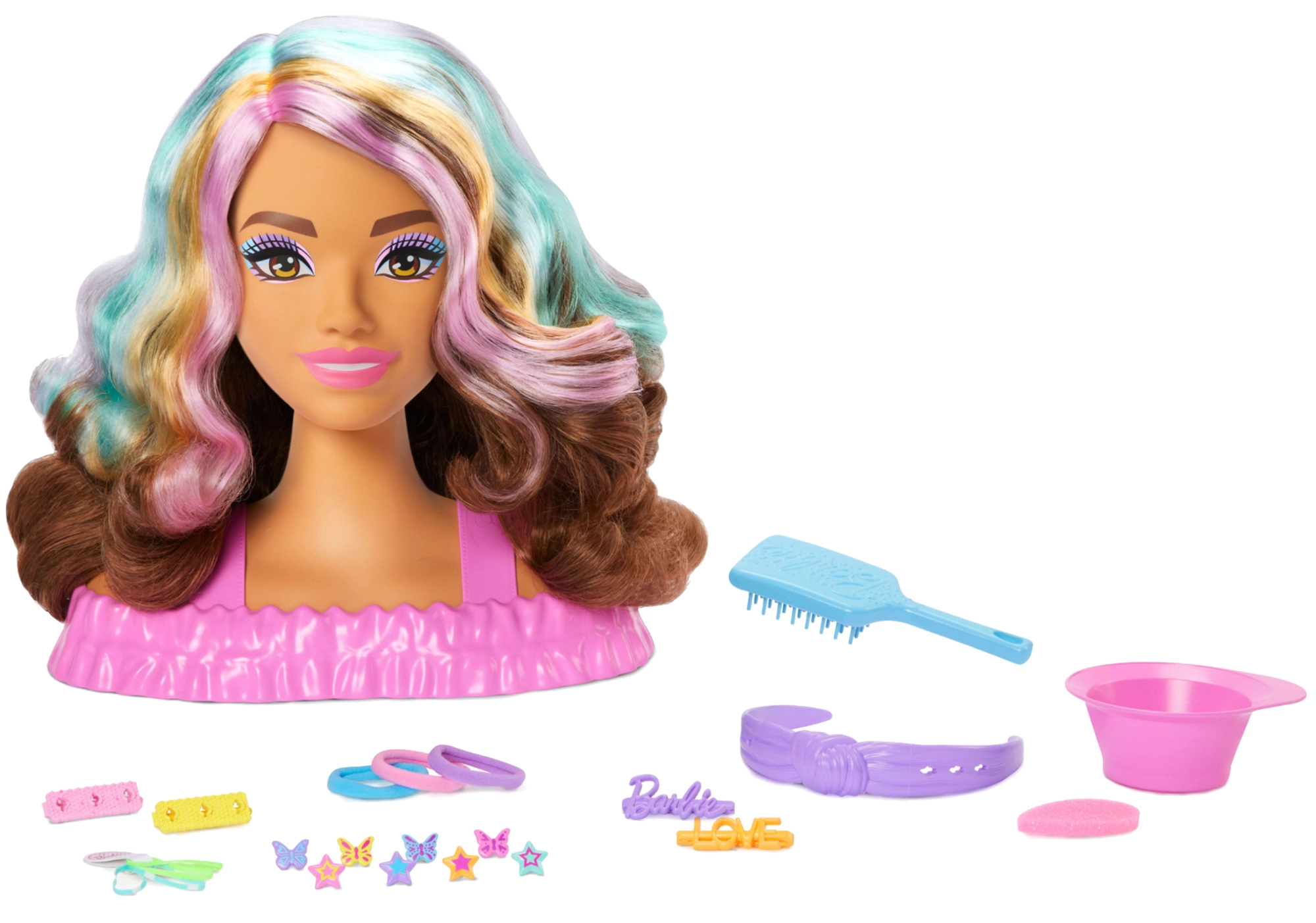 Word een kleine kapster met de BARBIE kophouder om te kammen en een ruime set accessoires. Lange bruine haren met pastelkleurige lokken nodigen uit tot het maken van vlechtjes, knotjes en staartjes. Inclusief clips en elastiekjes, borstel, haarband en leuke kleurveranderingseffecten bij de speldjes en lippen met behulp van een sponsje. Ideaal voor creatief spel en de ontwikkeling van de fijne motoriek.