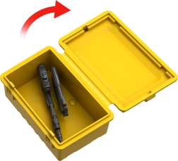 Inclusief twee menselijke figuren met blaster, gereedschap en een gele kist – ideaal voor rollenspel en interventiemissies.