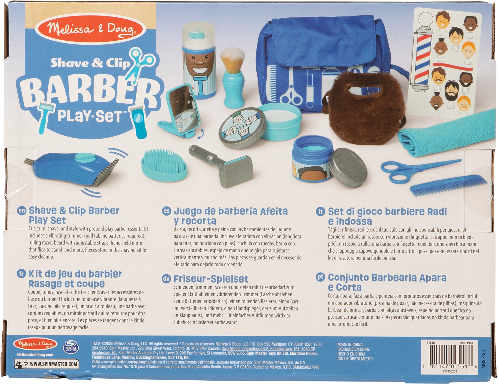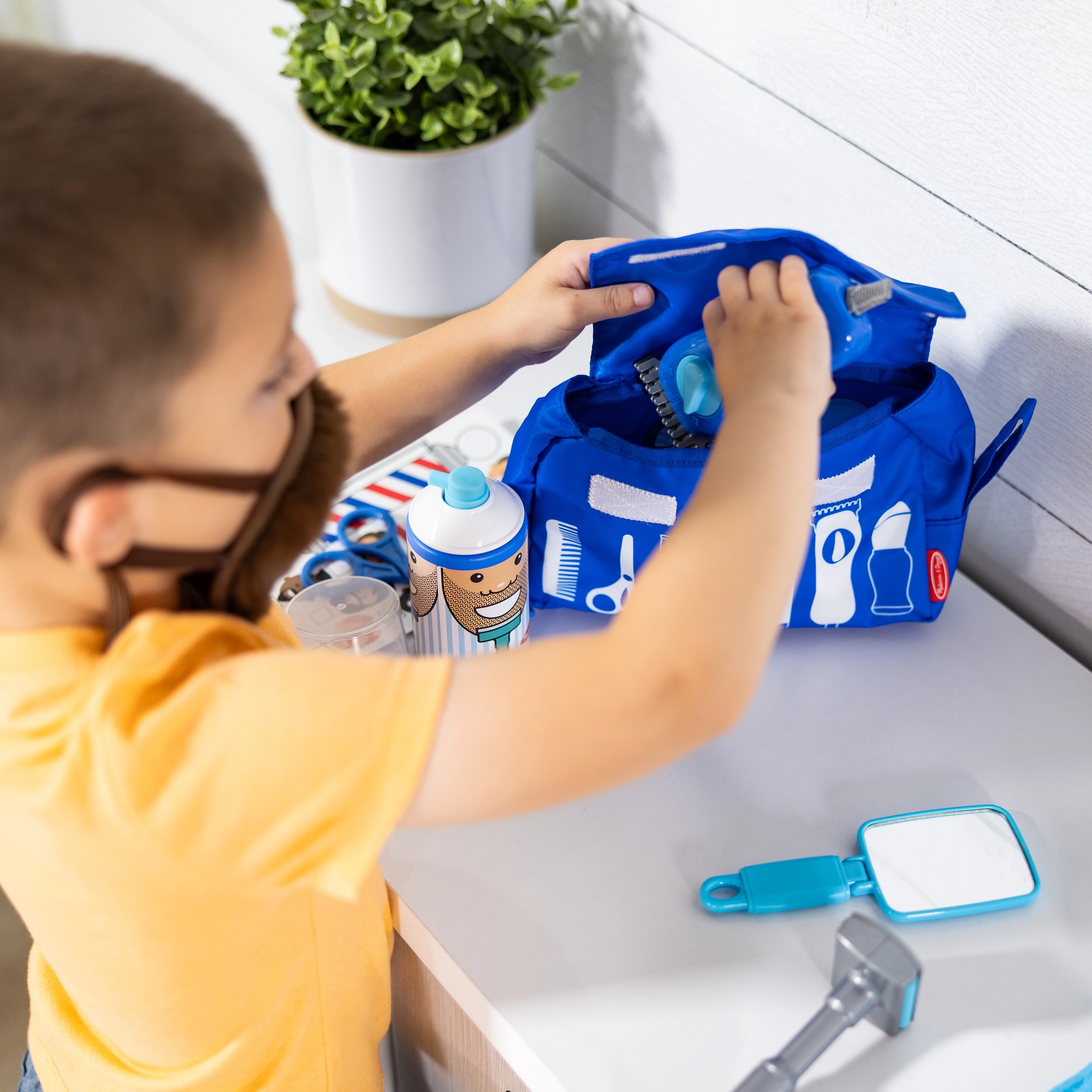 Een leuke kappersset voor kinderen met alles wat nodig is voor realistisch barberspel. Kinderen kunnen knippen, scheren, kammen en stylen van haar en baard, en zo creativiteit en fijne motoriek ontwikkelen. De praktische afsluitbare tas houdt alle realistische accessoires bij elkaar en maakt meenemen eenvoudig.