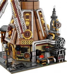 Betreed de wereld van uitvinders en fantasie met deze steampunk-bouwset, die doordachte constructie combineert met prachtige details – leidingen, tandwielen, ketels en industriële elementen. De draaiende wieken van de windmolen en andere bewegende onderdelen geven het model een realistische uitstraling en maken zowel het bouwen als het tentoonstellen tot een echte belevenis.