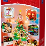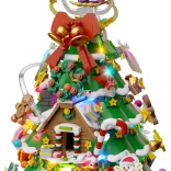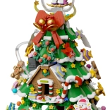 Deze elegante kerstboom van bouwsteentjes wordt de blikvanger op de feesttafel en in de woonkamer. Hij bevat betoverende details zoals een mini-treintje, sneeuwpop, peperkoekhuisje, belletjes en een peperkoekmannetje. Bovenop schittert een kristallen bol met schommelpaard, inclusief transparante kap voor bescherming en een fraai effect.