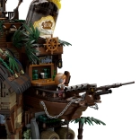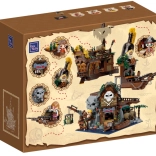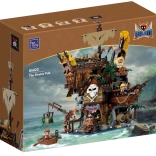 Breng zeeverhalen tot leven met deze rijk uitgewerkte bouwset van een piratenherberg. De constructie combineert rustiek hout, kettingen, vaten, lantaarns en het symbool van de schedel met gekruiste botten; ook een zeil, vlag en functionele details zoals deuren, een kraan en een kleine boot ontbreken niet. Het model betovert zowel kinderen als volwassen bouwers en wordt een opvallend stuk in elke collectie.