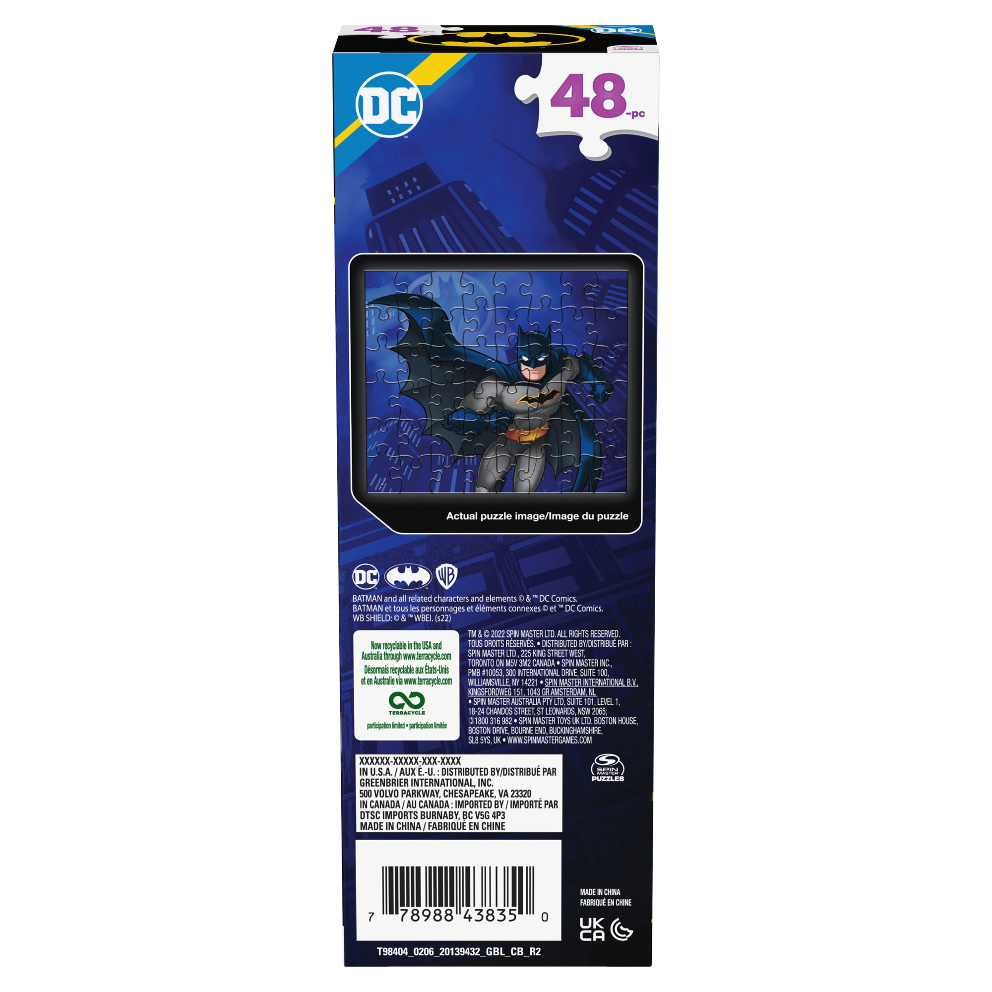 Kinderpuzzel met BATMAN-motief van Spin Master met 48 stukjes die samen een afbeelding van 26,2 × 23,1 cm vormen. Geweldig voor de ontwikkeling van concentratie, geduld en logisch denken – ideaal als origineel cadeau voor jonge fans van DC Comics.