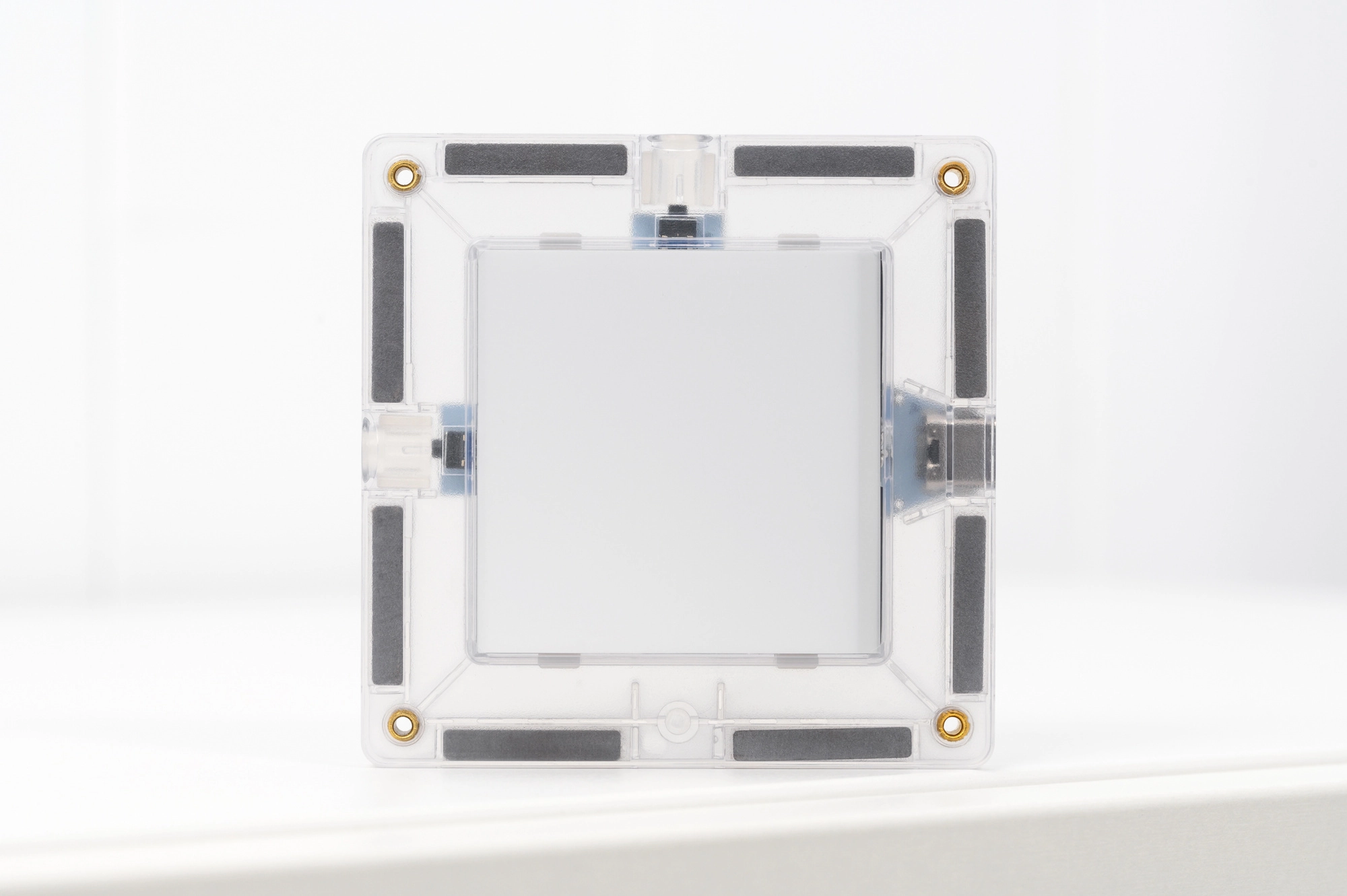 De set bevat een verlichte vierkante tegel die de transparante onderdelen laat stralen en zintuiglijk spel en creatieve experimenten met licht en kleur stimuleert.