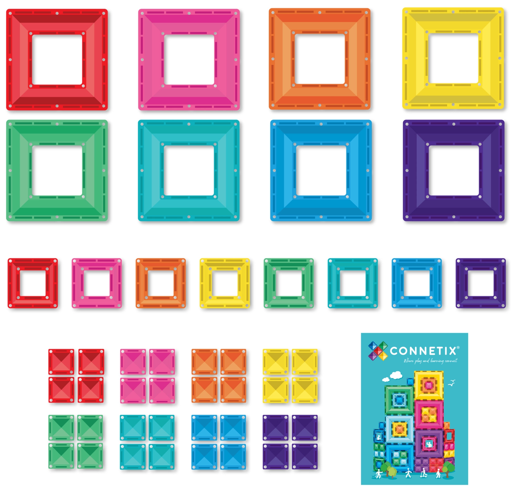 De set bevat portaalframes voor opvallende architectonische elementen en praktische kleine vierkanten voor gedetailleerde bouw. Perfect voor thuis spelen, kinderdagverblijven, Montessori-activiteiten en sensorische therapie. De delen zijn compatibel met andere CONNETIX-sets, zodat je je collectie geleidelijk kunt uitbreiden.