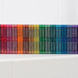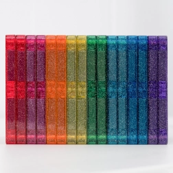 Duurzame, kleurechte tegels met glitter betoveren kinderen en ondersteunen het leren van kleuren, licht en vormen tijdens creatief spel.