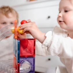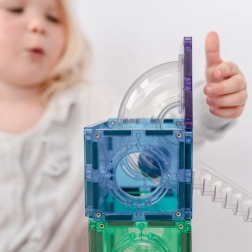 Bouw kleurrijke torens, bruggen en doordachte knikkerbanen, volg de route van knikkers door transparante tunnels en ontdek de principes van zwaartekracht, snelheid en balans. Connetix-tegels in regenboogkleuren hebben stevig geklonken magneten die van alle kanten aantrekken, waardoor constructies stabiel blijven en het “klik”-gevoel bij het verbinden extra bevredigend is.