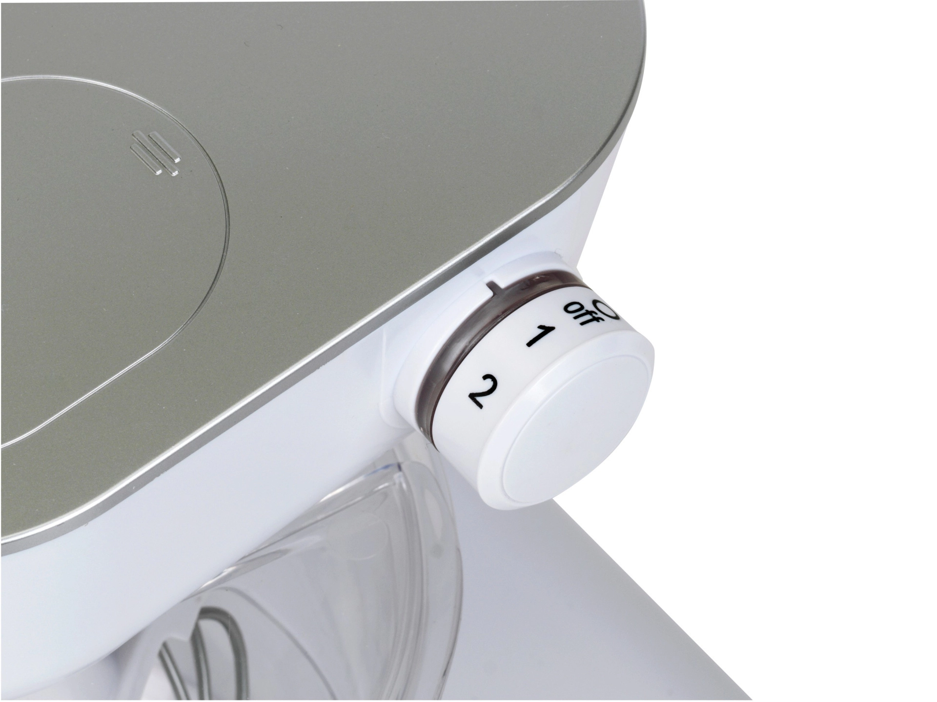 - 2 snelheden, licht en geluid, kantelbare arm, afneembare kom en garde