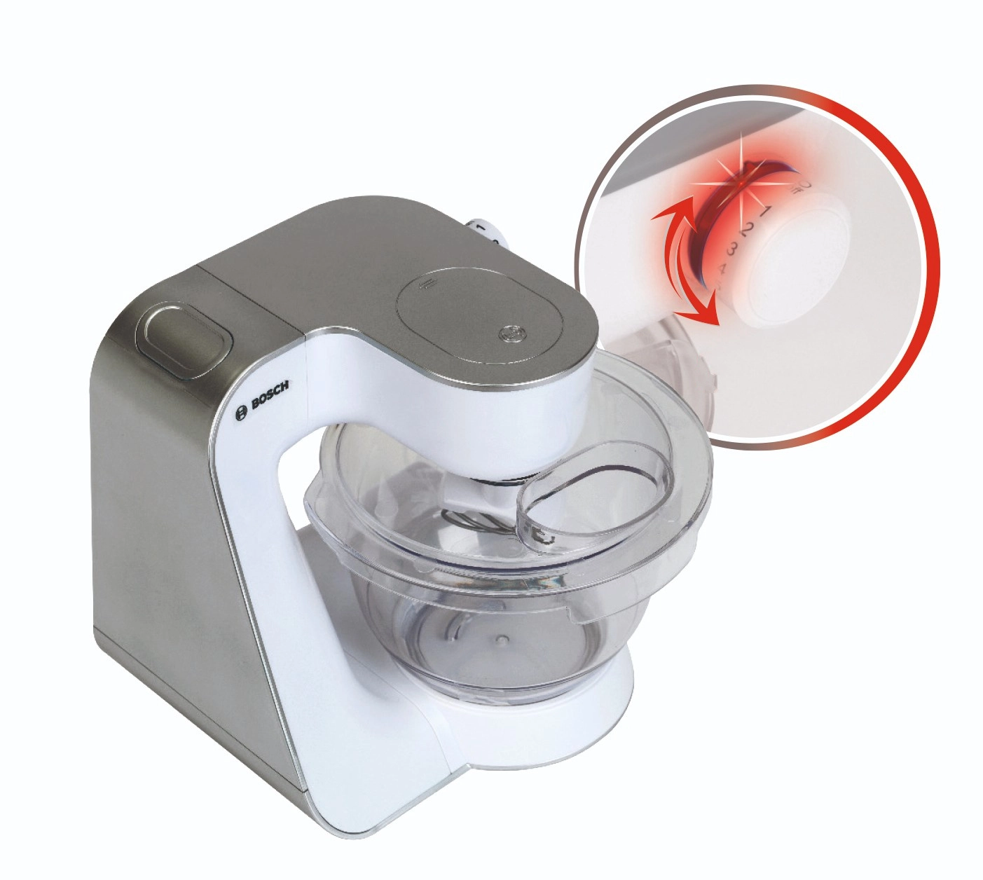 Een natuurgetrouwe replica van de echte BOSCH-keukenmachine motiveert kinderen om volwassenen na te bootsen en stimuleert creatief spel in de keuken.