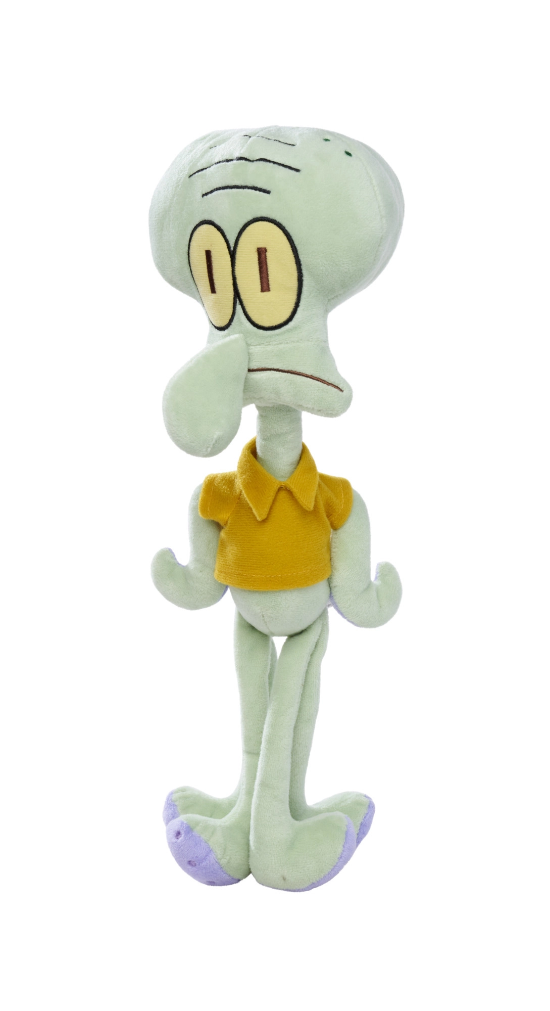 Maak kennis met een schattige kameraad voor de kinderkamer – de pluche Squidward in zijn kenmerkende geel-oranje shirt. De realistische gezichtsuitdrukking, lange ledematen en zachte vulling maken van dit speelgoed de perfecte metgezel voor alle liefhebbers van de wereld van SPONGEBOB.