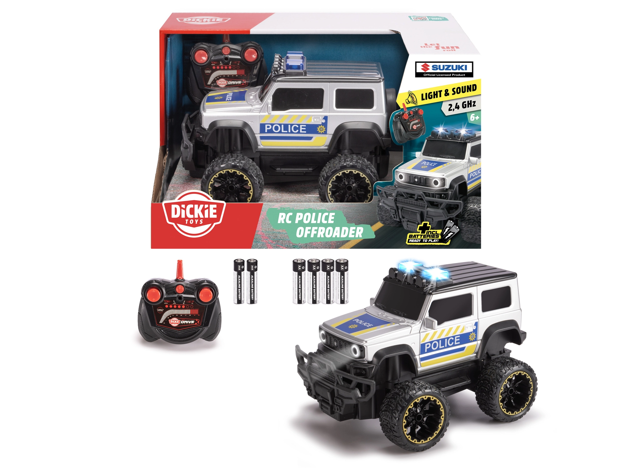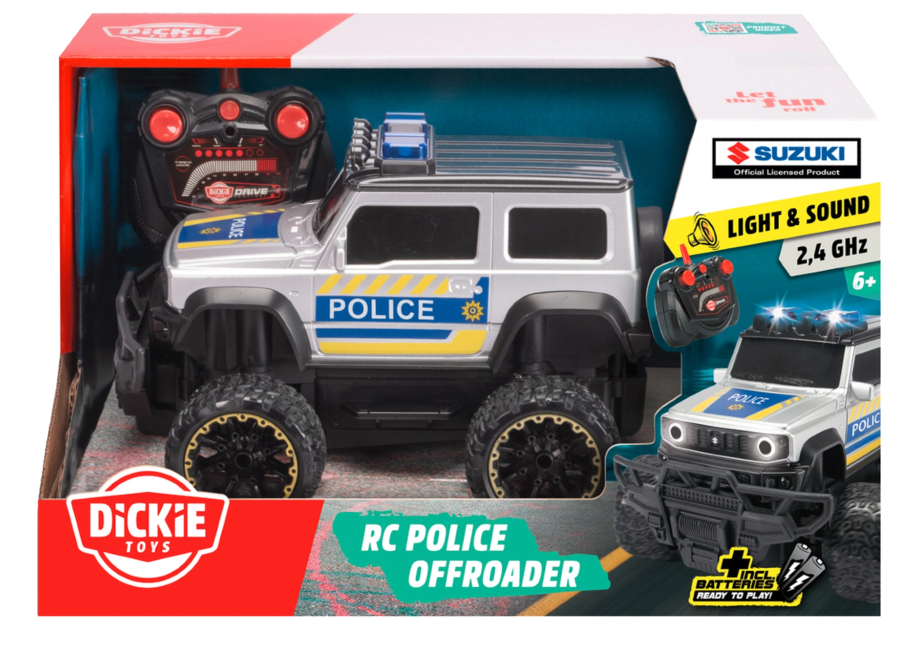 Ga in actie met de realistische RC politie-offroad SUZUKI op schaal 1:24. Dankzij de 2,4 GHz afstandsbediening, licht- en geluidseffecten en batterijen in de verpakking is hij direct na het uitpakken klaar voor gebruik. Ideaal voor kleine liefhebbers van actie en motorvoertuigen.
