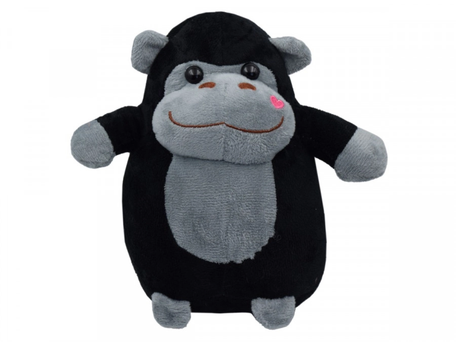 De schattige pluchen gorilla Afro van 20 cm maakt elke dierenliefhebber blij. Kies uit de varianten bruin of zwart. Het speeltje is versierd met een lieve glimlach, zachte haartjes en hartjes op de wangen. Ideaal om mee te knuffelen, mee te spelen of als cadeau voor kinderen vanaf 3 jaar.