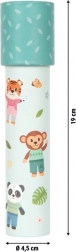 De Kaleidoscoop Junglevrienden SMALL FOOT verrukt kinderen vanaf 3 jaar met een speels design met motieven van tijger, olifant, aap, zebra, panda en nijlpaard. Bij elke draai verschijnen binnenin steeds weer nieuwe geometrische patronen die de fantasie prikkelen en kinderen leren kleuren en vormen te herkennen.