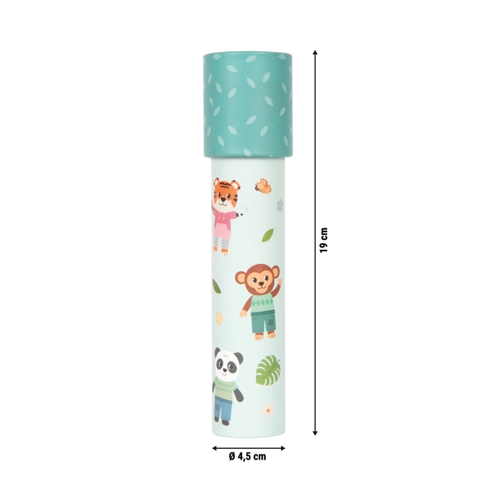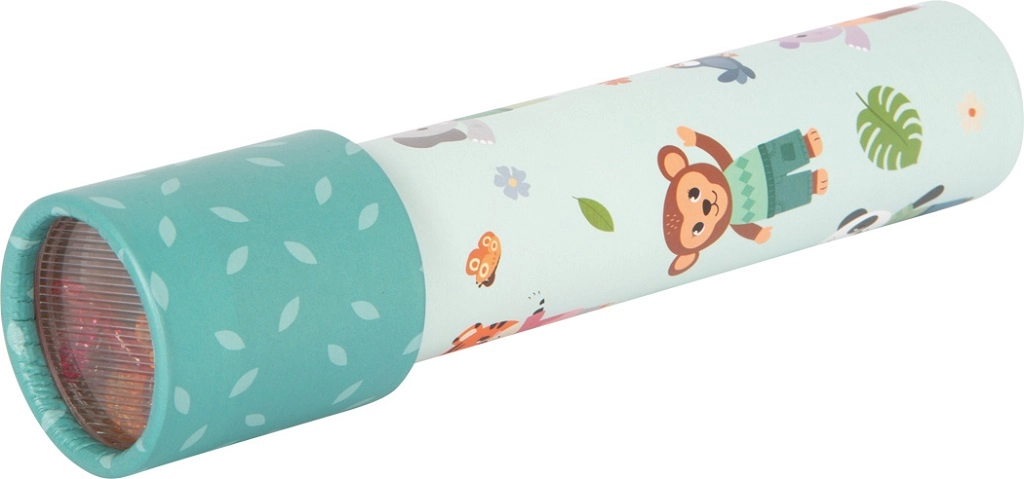 Ontdek de wereld van kleuren en vormen met de kinderkaleidoscoop SMALL FOOT – Junglevrienden. De lichte, makkelijk vast te houden kijker met schattige diermotieven creëert bij het draaien oneindig veel bonte patronen die visuele waarneming, verbeelding en concentratie stimuleren. Gemaakt van materialen met FSC-certificering – een verantwoorde keuze voor kinderen én natuur.