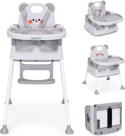 Deze multifunctionele 3-in-1 kinderstoel laat kinderen samen met het gezin eten en bespaart tegelijk ruimte. Dankzij het eenvoudig ombouwen gebruik je hem als hoge stoel, laag stoeltje of stoelverhoger – ideaal voor de keuken, kleine ruimtes en onderweg.