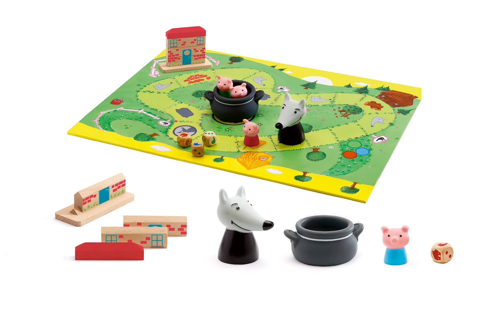 Stap het sprookje van de drie biggetjes binnen en help hen een veilig bakstenen huis te bouwen voordat de wolf hen te pakken krijgt. Spelers spelen niet tegen elkaar, maar samen – elke beurt telt en bepaalt of de biggetjes kunnen ontsnappen. Het spel is ideaal voor jongere kinderen dankzij de duidelijke regels en de korte speeltijd.