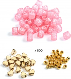 Een elegante creatieve set met letterkralen voor het maken van persoonlijke armbanden en kettingen. Kinderen leggen eenvoudig namen of berichtjes en creëren originele sieraden in een gouden uitvoering. Een geweldige keuze voor fijne motoriek, creativiteit en als cadeau voor jonge makers.