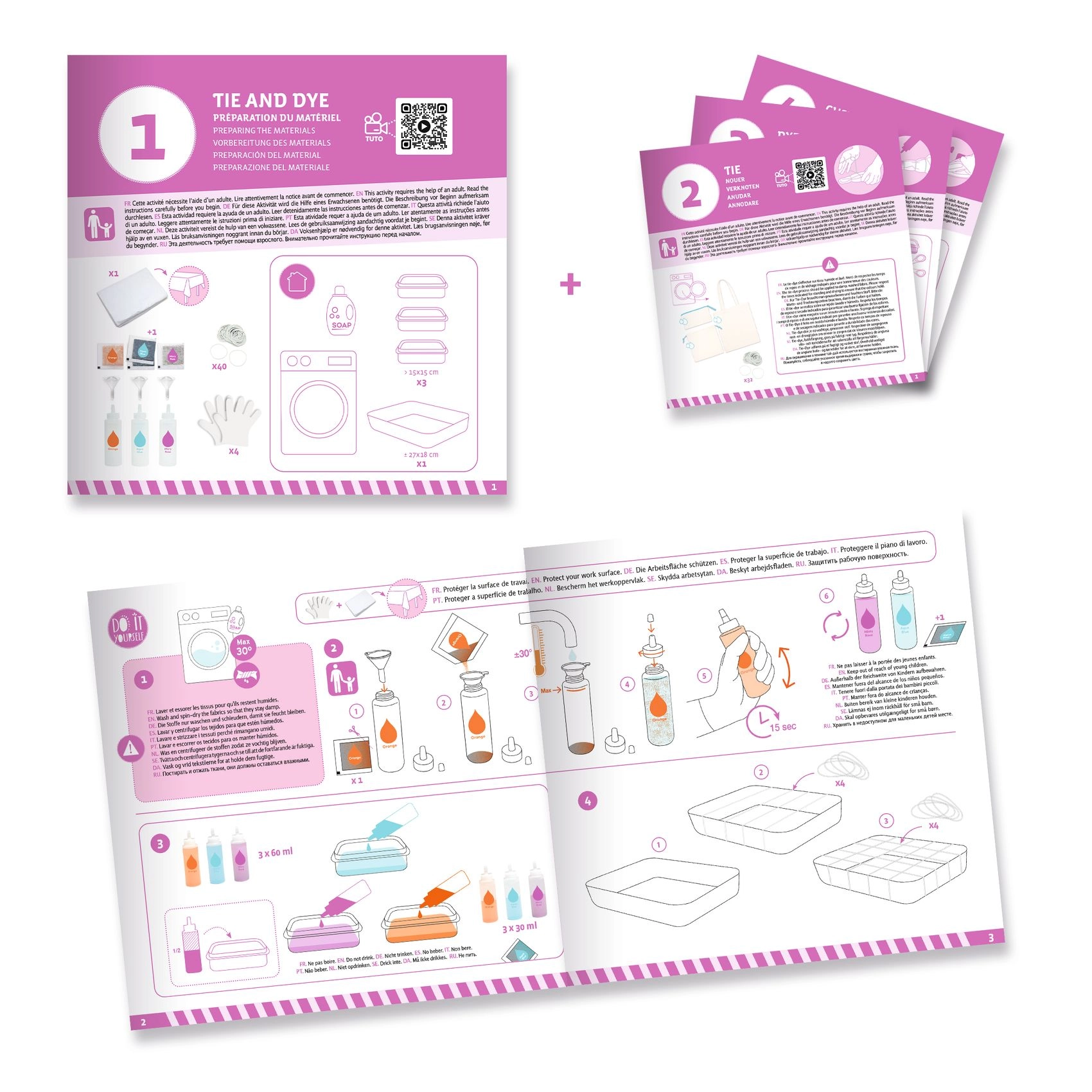 Deze complete DIY-batikset verandert alledaagse textiele accessoires in stijlvolle originals. Dankzij de heldere stap-voor-stap instructies beheersen zelfs kinderen of beginners de bind- en verftechnieken. Maak spiralen, strepen, hartjes of marmer-effecten en geef uiting aan je creativiteit.
